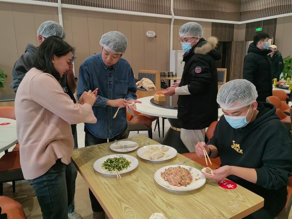 活动现场,食堂工作人员为大家准备了饺子皮和饺子馅。大家分工协作、井然有序,各位老师也参与其中,和同学们一起包饺子。经过大家的不懈努力,一盘盘热气腾腾、裹满爱意的饺子端上饭桌。饺子的热气在空气中蔓延,洋溢在每一位同学的心里,是深冬时刻的温暖与浓情。大家边吃边谈,气氛非常活跃,感受着劳动带给大家的快乐。