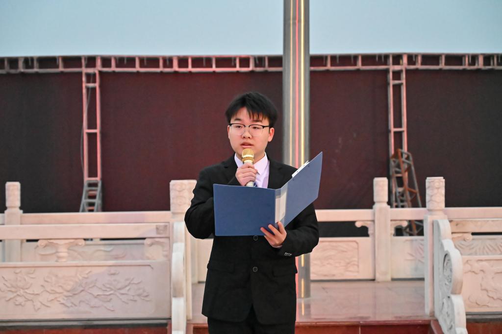 升旗仪式结束后,2022-2023学年学习标兵牟正军作为学生代表进行“振奋龙马精神,谱写逐梦新篇”为主题的国旗下演讲,号召新时代青年保持乐观心态,丰富美好生活,勇于担当责任,积极投身实践,发扬龙马精神,共同为实现中华民族伟大复兴的中国梦而努力奋斗!