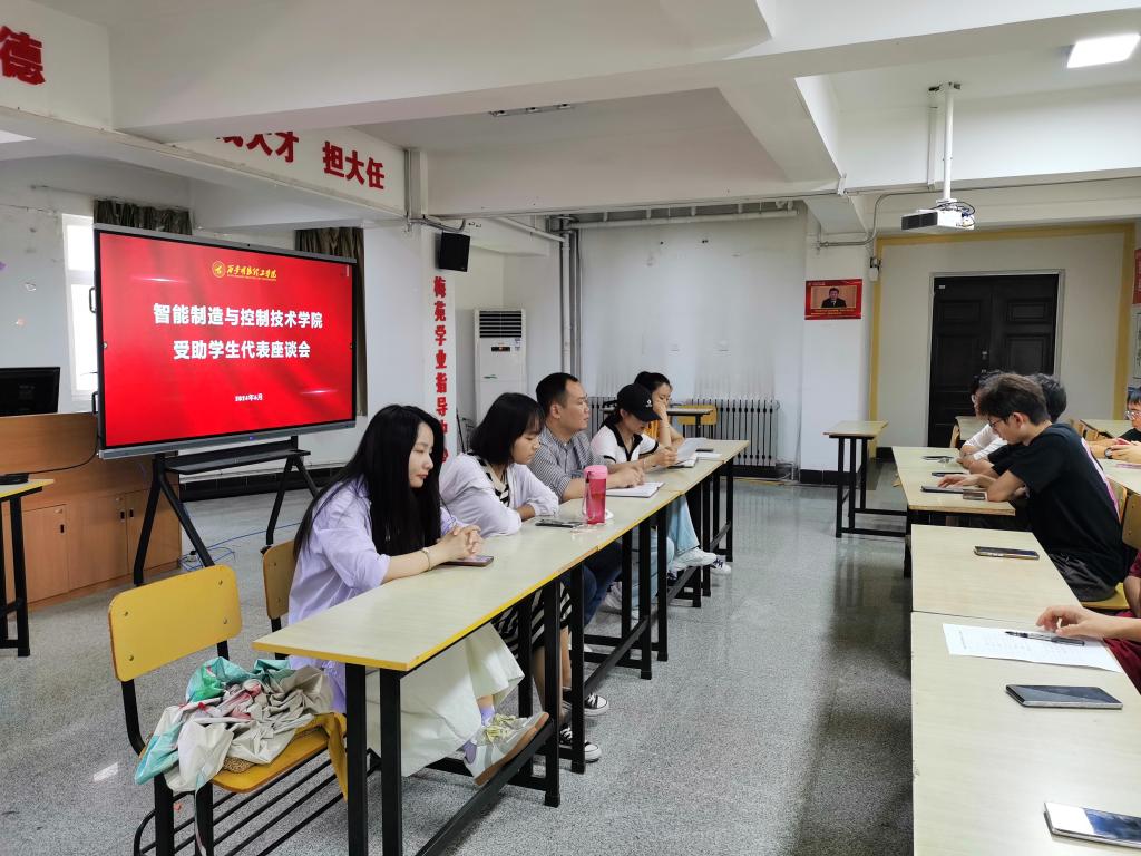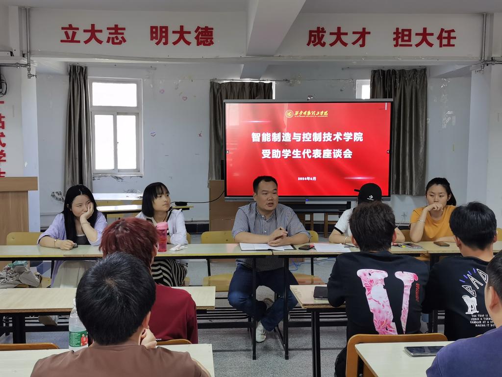 为进一步贯彻落实陕西省教育办公厅《关于开展第二届高校资助育人主题活动和评选高校资助育人典型案例的通知》精神,引导学生坚定理想信念、涵养奋斗品行,德智体美全面发展;激发学生自立自强、勤奋创新,教育学生自觉做社会主义核心价值观的坚定信仰者、积极传播者和模范践行者。智能制造与控制技术学院于6月18日下午在“一站式”学生社区组织召开了“感恩资助·励志成才”的受助学生代表座谈会。学院党委副书记曾凯,资助专干王越,辅导员代表以及受助学生代表参加座谈。