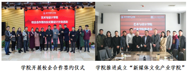 学院高度重视应用型人才培养,开展“学校-企业-行业”深度合作,建有“新媒体文化产业学院”等产学研合作平台。学院与中央广播电视总台央广教育、爱奇艺、优酷、喜马拉雅FM西安站、陕西广播电视台、陕西新浪有限公司、华商传媒、嘉德明诚文化科技有限公司、江苏东方1号创意有限公司、西安缔造者机器人有限公司、敦煌艺术应用推广研究中心等30余家国内知名企业建立校企合作,共建实验实训中心和联合实验室,打造众创空间和创新创业孵化基地,完善课程体系、共同开发课程、将企业实际项目、前沿技术和创新理念引入培养方案和教育教学中,实现应用型人才培养与企业真实需求无缝衔接。学院同时和陕西省经济联合会、陕西省家具协会、陕西省摄影家协会等产行业组织建立了良好的合作关系。