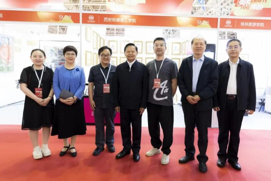 在中国工艺美术博览会上,中国轻工业联合会党委书记、会长张崇和等领导莅临学院展位
