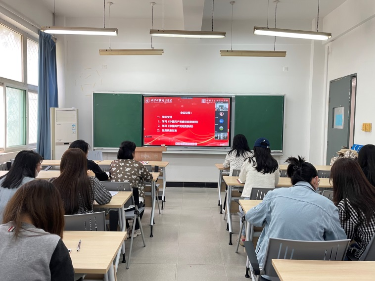 为进一步牢固树立纪律规矩意识,增强拒腐防变能力,树立公平公正的工作风气和正确的人生观、价值观,2023年5月24日中午,艺术与设计学院教工党支部全体党员同时在南北校区开展“党章党规党纪和法律法规学习”专题会议