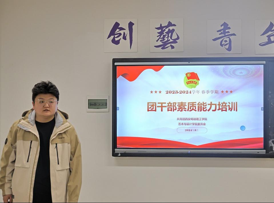 为引领广大团员和青年认真学习领会习近平新时代中国特色社会主义思想和党的二十大精神,持续深化高校共青团基层组织改革。3月26日,艺术与设计学院团委在长安校区1号实训楼501教室召开2023-2024学年春季学期团干部素质能力培训。由艺术与设计学院团委书记兰艳,团委学生干部,优秀团干部、优秀团支书参加此次培训,培训会由团委副书记张炜成主持。