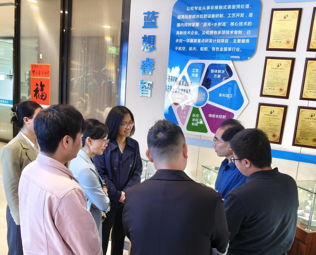 西安蓝想新材料科技有限公司激光清理、双高压清洁、智能控制等先进技术持续深耕,有多项非接触式表面预处理实用新型专利和发明专利学院一行在西安蓝想新材料科技有限公司领导的陪同下,首先参观了重点实验室研发中心生产车间等,近距离感受企业技术实力与创新成果