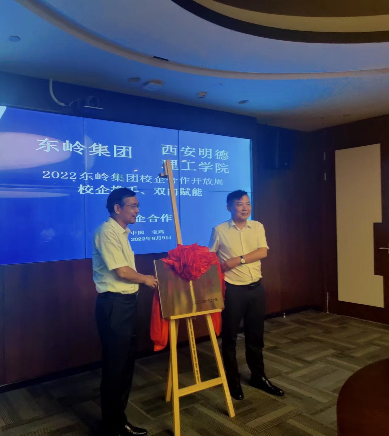 在热烈、融洽的气氛中,副校长庾鲜海与东岭集团黄万峰共同签订了毕业生就业实习实训基地合作协议,校长杨健君和东岭集团李伟为就业实习实训基地揭牌,开启了校企合作,双向赋能的新篇章。