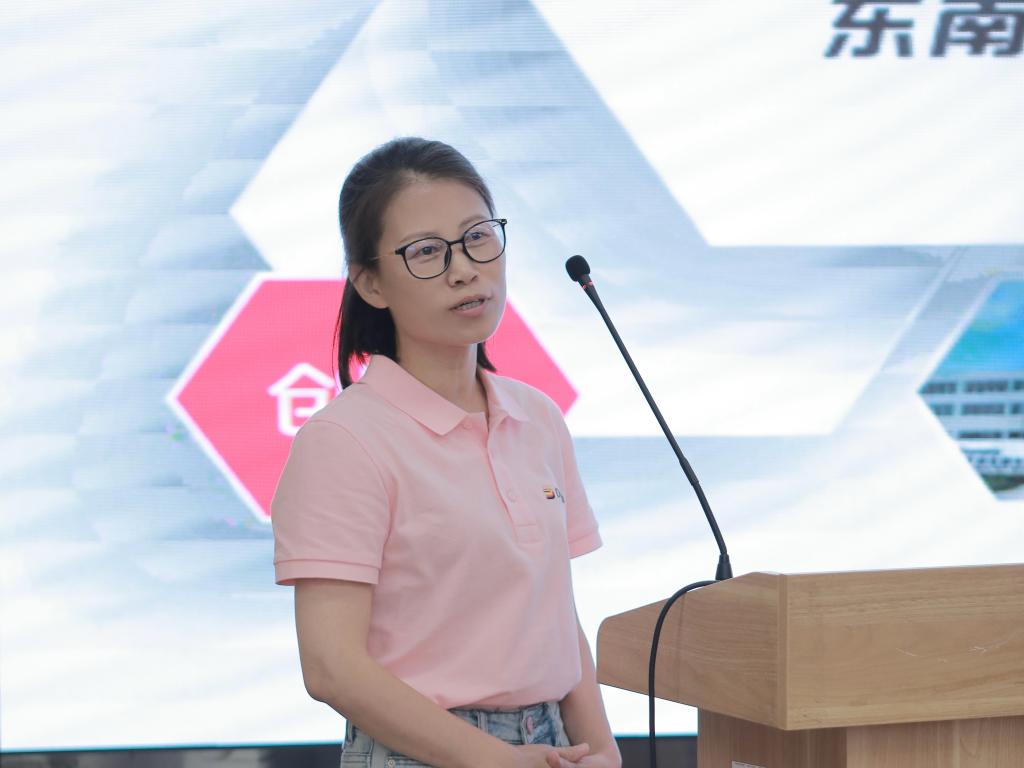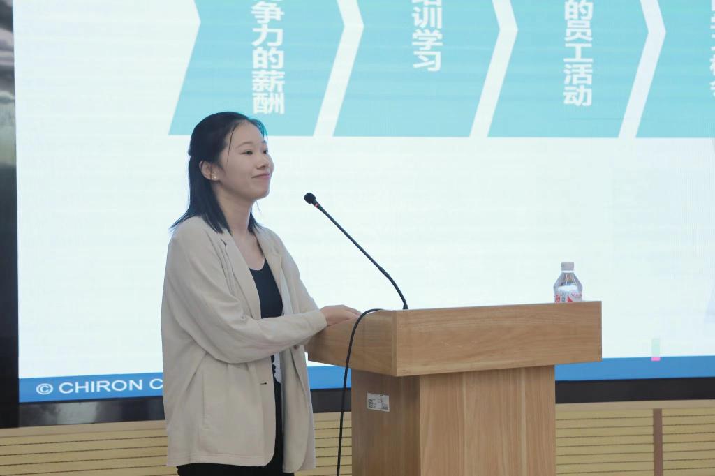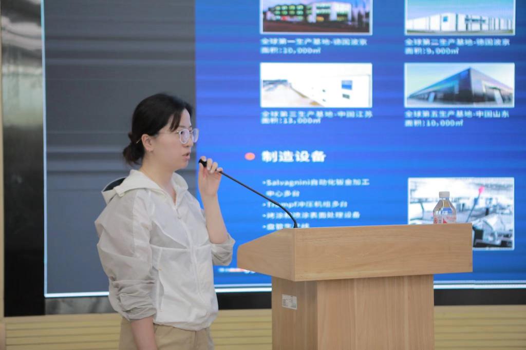 与会的6家合作企业代表:巨浪凯龙机床(太仓)有限公司(德企)培训经理陈晓丹、多摩川精密电机(苏州)有限公司(日企)课长代理金鑫、欧托凯勃汽车线束(太仓)有限公司(德企)培训负责人汪鸣、苏州东南佳新材料股份有限公司副总经理王建新、慕贝尔汽车部件(太仓)有限公司(德企)人事专员王敏娇、博纳环境设备(太仓)有限公司(德企)人事主管钱春艳,依次上台进行宣讲,介绍企业情况。