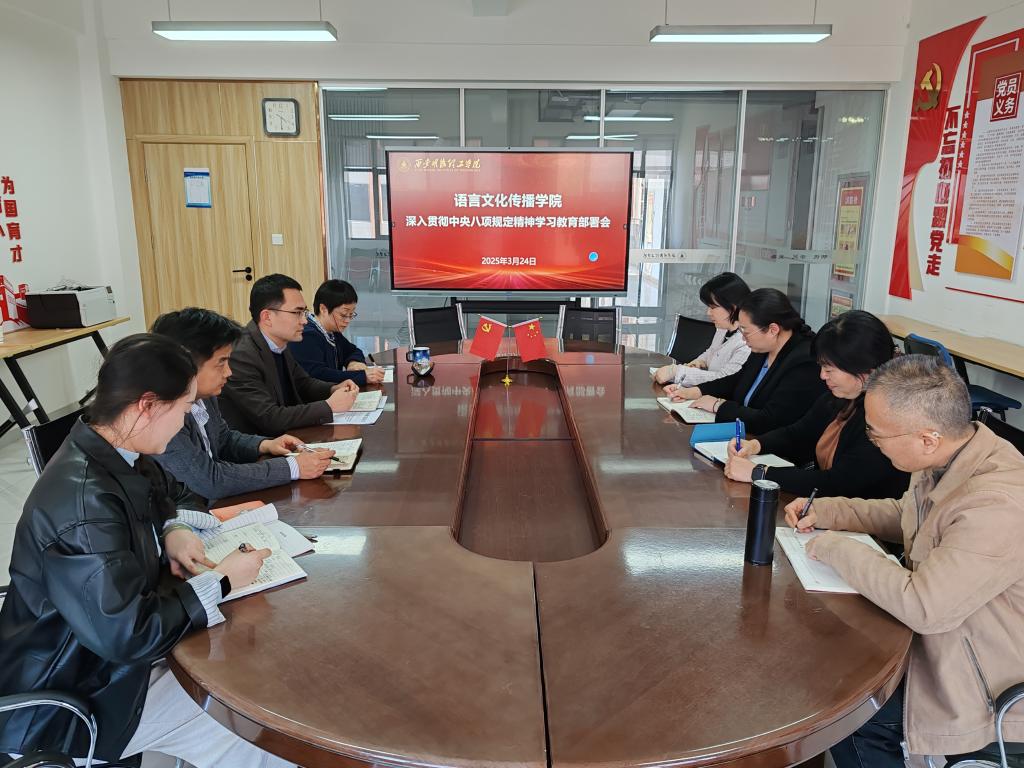 为深入贯彻落实中央八项规定精神,推进作风建设常态化长效化,3月24日,语言文化传播学院在明志楼北406召开深入贯彻中央八项规定精神学习教育启动部署会。学院党委委员、各支部书记参加了此次会议。会议由学院党委书记赵旭东主持。
