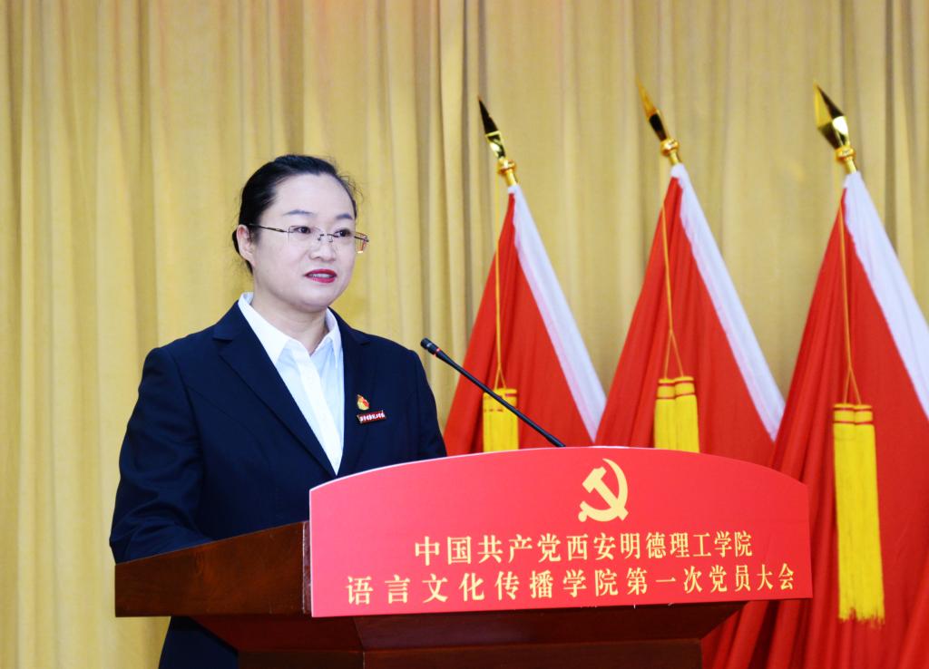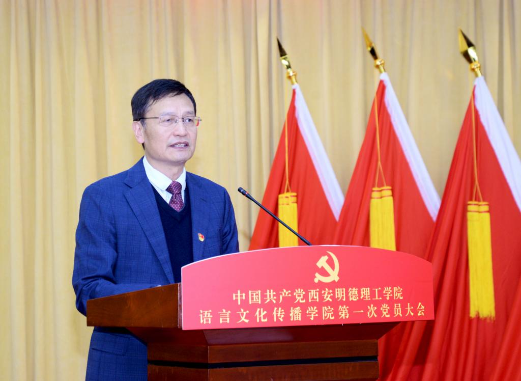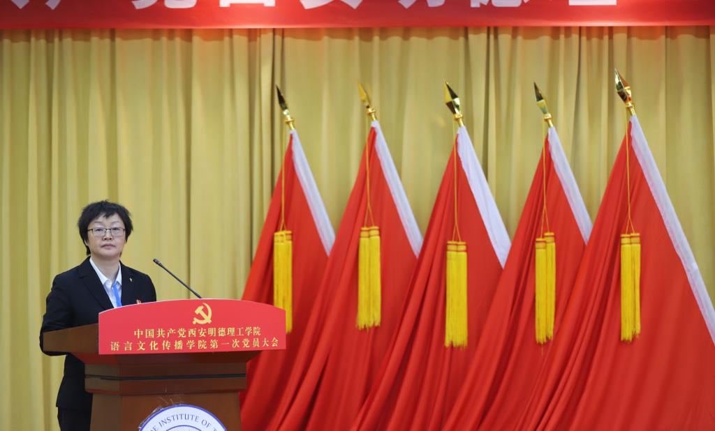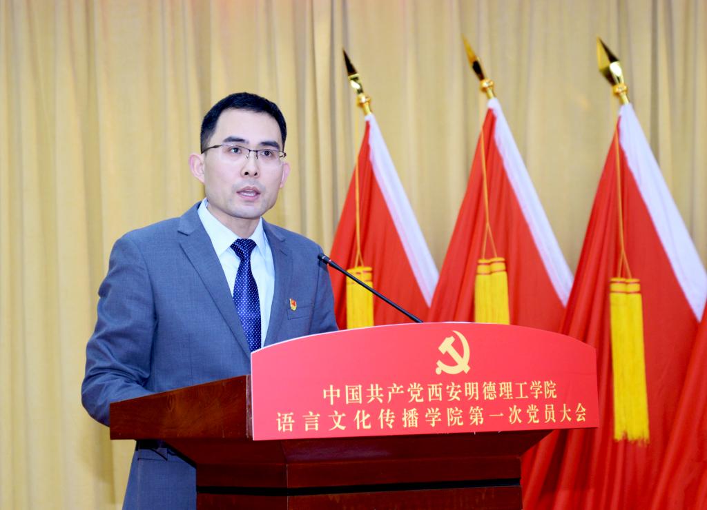 院长马庆林致辞。他指出,语言文化传播学院自组建运行以来,学院党委充分发挥总揽全局、协调各方的领导核心作用,始终坚持社会主义办学方向,践行为党育人、为国育才使命,坚持“围绕中心、服务大局、以高质量党建引领高质量发展”的工作方针,团结带领全体师生艰苦奋斗、锐意进取,各项事业取得了长足的发展。学院召开第一次党员大会,既是对过去工作成效与基本经验的总结,也是对未来五年乃至更长时期的工作目标和主要任务谋划,希望选举产生的新一届党委以这次党员大会为契机,以高度的使命感和责任感,充分发挥政治核心作用,凝聚最广泛力量,团结带领全院师生敢想敢为又善作善成,推动学院高质量特色发展。