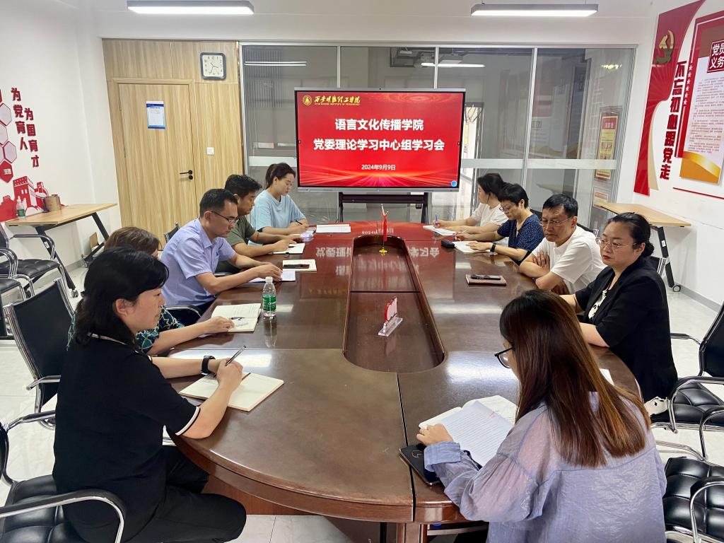 9月9日下午,语言文化传播学院在明志楼406会议室召开党委理论学习中心组学习会,学院党委理论学习中心组全体成员参加学习。会议由学院党委书记赵旭东主持。