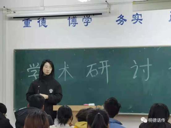 此次学习经验交流会的召开旨在加强我院学生专业知识的能力,提升新生对专业的学习兴趣,尽快找到适合自身的学习方法。研讨在学长学姐专业学习经验分享中拉开帷幕,随后学长学姐分享了自己学日语的初衷。