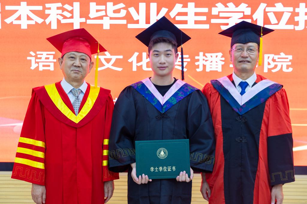 渭水夏意浓,扬帆赴锦程。6月23日下午,语言文化传播学院2025届本科毕业生学位授予仪式暨欢送会在建德楼201报告厅隆重举行。学校校长王志刚、学院领导班子成员、学位评定分委员会委员、全体辅导员、2025届全体毕业生及部分毕业生家长出席本次活动。仪式由学院党委书记赵旭东主持。