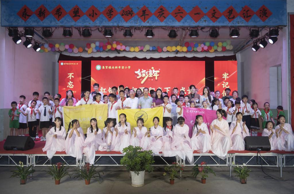 永新希望小学的同学们自信上台,《少年中国梦》《青春舞曲》合唱,《经典耀中华》《中国话》朗诵以及《小英雄雨来》课本剧……舞台上他们天真绚烂的笑容、灵动的舞姿、整齐嘹亮的诵读,都展现出新时代中国儿童的蓬勃朝气的活力。