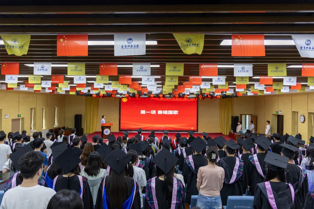 伴随着庄严的国歌,毕业典礼正式拉开帷幕。学校副校长王斌宁宣读了《ac米兰官方网站关于语言文化传播学院2024届普通高等教育本科毕业生学士学位授予的决议》。他向圆满完成学业的毕业生们表示热烈的祝贺,并对他们在校期间的努力和付出给予了充分的肯定。