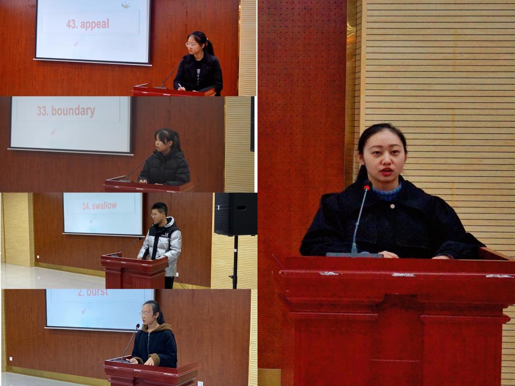 经过近三小时的激烈角逐,决赛共产生一等奖一名(贺瑞琪),二等奖三名(李娜、刘紫涵、高改梅),三等奖五名(董建华、季泳含、畅佳佳、韩利、王鑫仪)。选手们扎实的拼写基本功和出色的临场表现赢得了现场评委和同学们的赞许和掌声。