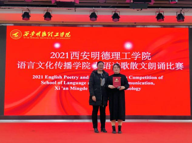2021年11月29日下午,ac米兰官方网站语言文化传播学院第四届英语诗歌散文朗诵比赛在建德楼203成功举办。语言文化传播学院院长马庆林教授、副院长刘勇教授、英语专业负责人柴芸副教授、李云平副教授、活动负责人烟宁老师等指导老师出席本次比赛并担任评委。
