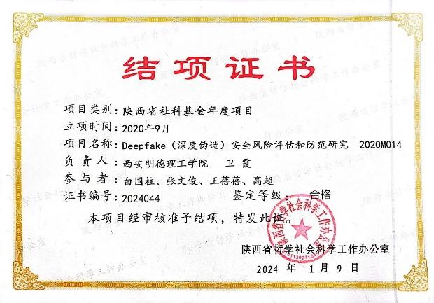 部分项目结题证书