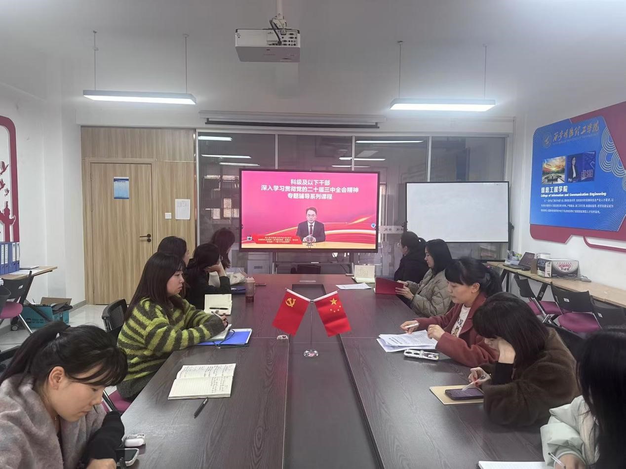 为深入学习贯彻党的二十届三中全会精神,引导党员、干部把党的战略部署转化为推进中国式现代化的强大力量。近日,信息工程学院教工第二党支部积极响应,牵头组织学院科级及以下干部党的二十届三中全会精神培训,深入学习领会习近平总书记关于全面深化改革的一系列新思想、新论点、新论断。