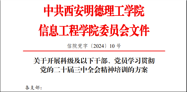 为深入学习贯彻党的二十届三中全会精神,认真领悟全会就进一步全面深化改革、推进中国式现代化作出的战略部署,抓好贯彻落实工作。根据学校党委安排,信息工程学院党委迅速行动、统一部署,12月2日至5日组织举办了科级及以下干部和全体党员学习贯彻党的二十届三中全会精神培训班。