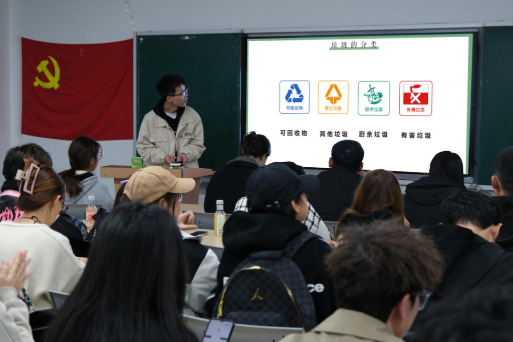 为深入学习贯彻习近平生态文明思想,发挥党员先锋模范作用,带头争当垃圾分类的先行者。信息工程学院学生第三党支部于12月30日在1#108开展“垃圾分类在行动,共创绿色校园行”主题党日活动。党支部书记李娜、全体学生党员及积极分子60余人参加,活动由组织委员门科研同志主持。
