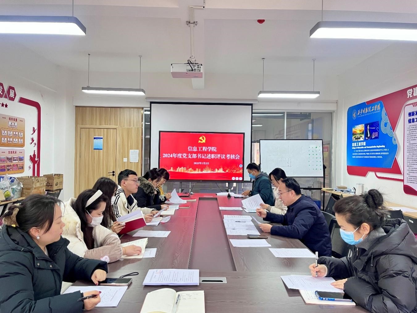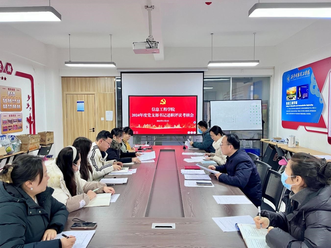 2025年1月2日上午,信息工程学院在明志楼北206会议室召开2024年度党支部书记述职评议考核会,学院党委委员及各党支部书记参加。会议由学院党委书记肖千春主持。