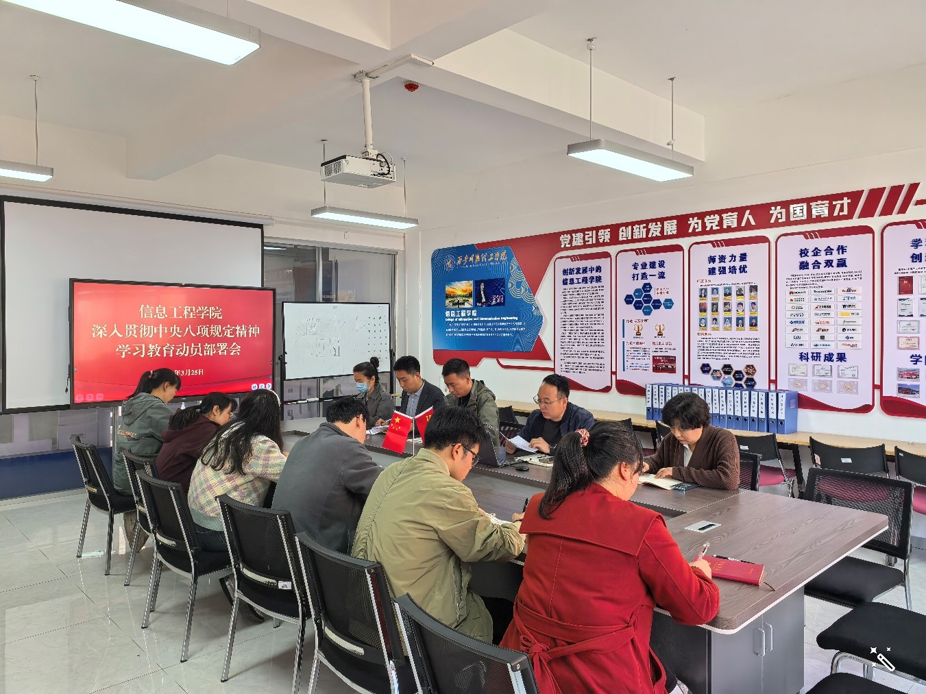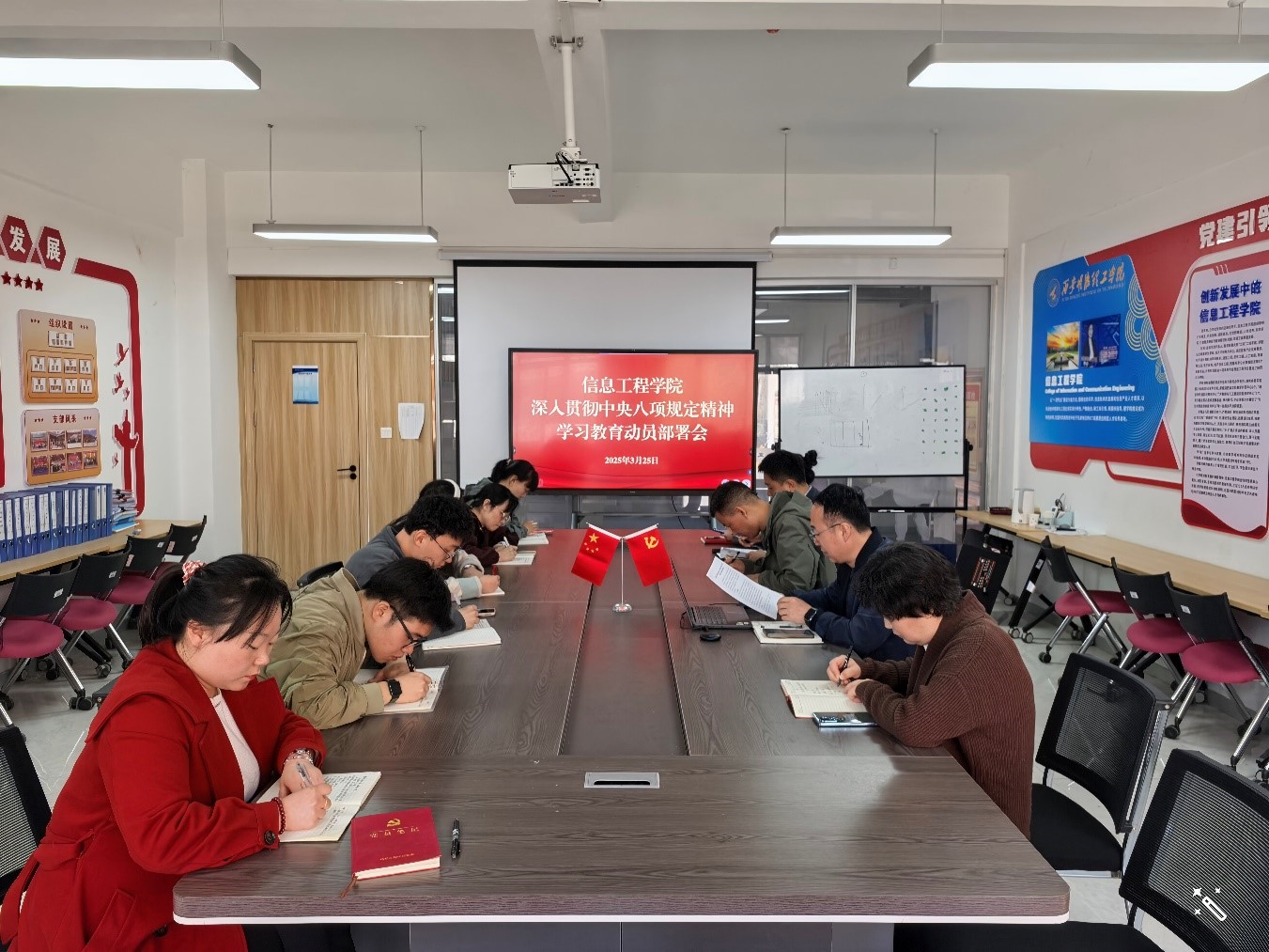 为深入学习贯彻习近平总书记关于加强党的作风建设的重要论述,落实党中央关于开展深入贯彻中央八项规定精神学习教育的决策部署,3月25日上午,信息工程学院在明志楼北206会议室召开党委扩大会,对深入贯彻中央八项规定精神学习教育工作进行动员部署。学院党委班子成员和各党支部书记参加会议。会议由学院党委书记肖千春主持。