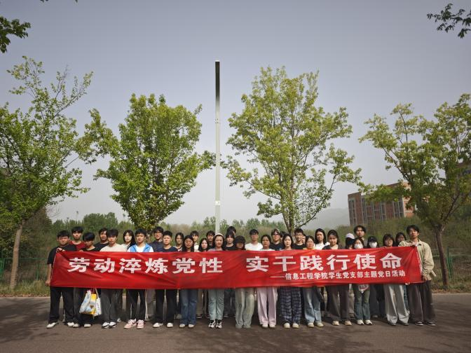 为贯彻落实习近平总书记关于劳动育人的重要讲话精神,强化学生党员的党性教育、使命担当及服务意识,增强劳动观念,使学生树立正确的劳动观点和劳动态度,信息工程学院学生第二党支部于4月9日组织开展“劳动淬炼党性 实干践行使命”主题党日活动,支部党员、积极分子参加本次活动。此次活动以劳动实践为载体,旨在通过实际行动锤炼学生党员的意志品质,增强服务意识和奉献意识。