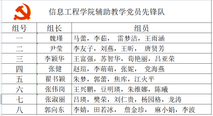 疫情防控也给教学活动带来不少的困难,学院党委积极响应校党委号召,发动党员,成立由42名党员组成的“信息工程学院辅助教学党员先锋队”,目的帮助解决疫情带来的上课困难,如线上教学困难、线上答疑等。若哪位老师有困难,我们将立即安排我们的党员先锋队教师来对接帮助。
