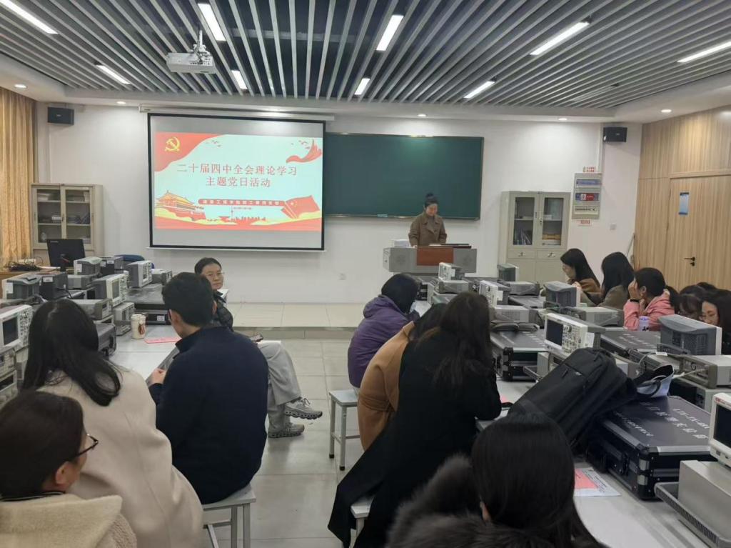 为深入学习贯彻党的二十届四中全会精神,2025年11月12日,信息工程学院教工第四党支部组织开展了“深学笃行全会精神,勇担育人使命”主题党日活动。本次活动通过“书记领学+支部研学”的学习方式,推动全会精神在全体党员中落地生根、见行见效。