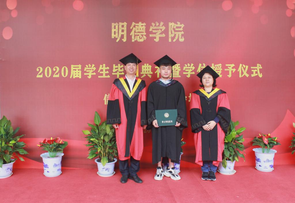 典礼在庄严的国歌声中拉开帷幕。教育产业运营总监、明德理工学院执行董事赵天骄宣读关于聘任ac米兰官方网站2020届毕业生班级校友联络员的决定,希望各位校友联络员珍惜荣誉、不辱使命,持续关注母校发展,积极参与校友活动,以高度的责任心和奉献精神,为学院教 育事业发展和校友工作做贡献。明德理工学院党委书记杨健君宣读关于表彰2020届优秀毕业生的决定,希望受表彰的毕业生,珍惜荣誉,谦虚谨慎,戒骄戒躁,再接再厉,在新的工作岗位上再创辉煌;号召全体应届毕业生,以先进典型为榜样,树立高尚的理想与情操,响应党和人民的号召,到基层去,到祖国最需要的地方去,发扬脚踏实地、艰苦创业的优良作风,勇于开拓,积极进取,努力发挥专业特长,回报社会,实现自己的人生价值,为祖国建设贡献自己的青春力量。随后,学院领导为参会毕业生拨穗并授学位并送上毕业祝福。优秀毕业生代表、校友联络员做了表态发言。希望同学们发扬“明德、亲民、至善”的校训,谨记老师殷切嘱托,脚踏实地,顽强拼搏,为实现人生理想而努力奋斗。