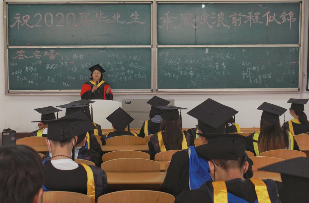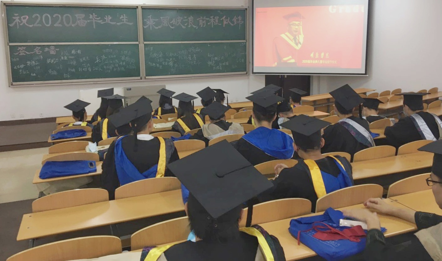 信息工程学院在立德楼103设毕业典礼暨学位授予仪式分会场,全体辅导员及2020届部分毕业生参加。信息工程学院院长王丽芳为我院2020届毕业生送来毕业祝福。希望同学们以此为契机,重新开启人生新旅程,奋发有为,用所学所得为社会做贡献,为自己谋幸福并祝福同学们乘风破浪,筑梦远航,同时为毕业生一一拨穗授学位。