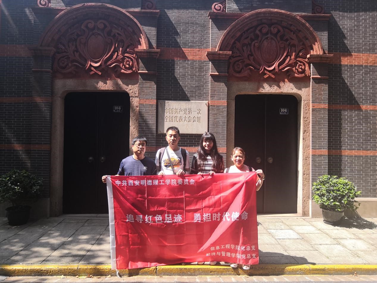 实践活动队首先参观了中国共产党第一次全国代表大会纪念馆。纪念馆宣誓大厅悬挂着巨幅中国共产党党旗,面对党旗,重温了入党誓词,深切体验到今天的生活来之不易。我们要继续发扬老一辈无产阶级革命家的光荣传统,把初心落实到行动上,将使命奉献到岗位上,求真务实、脚踏实地、做好本职。