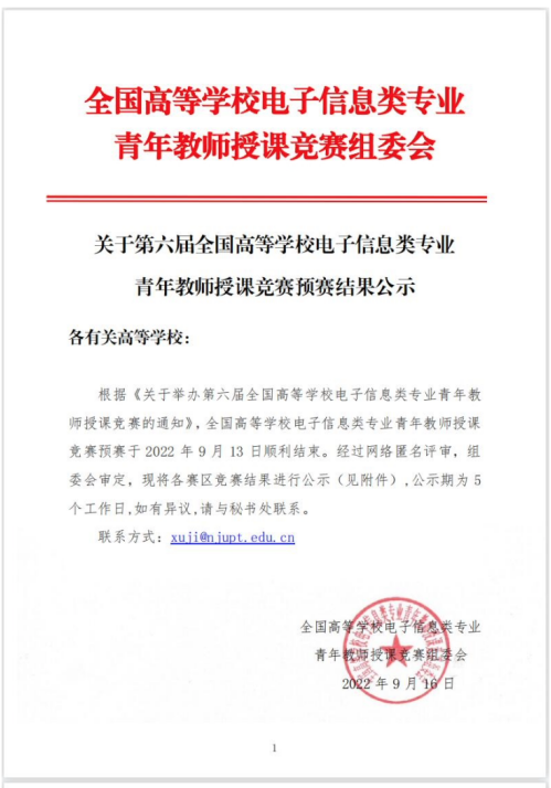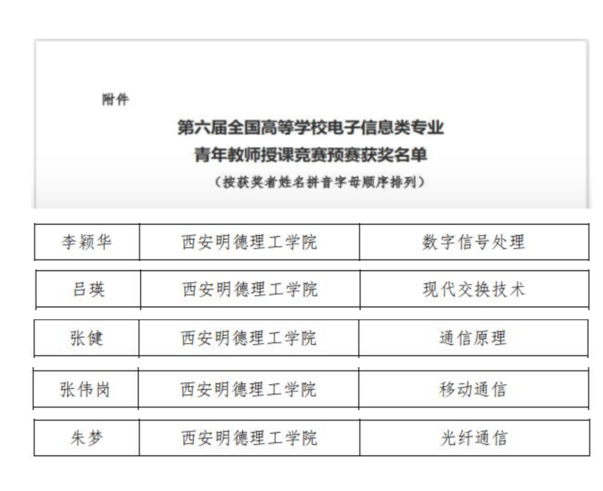 2022年9月16日,第六届全国高等学校电子信息类专业青年教师授课竞赛预赛结果公示,ac米兰信息工程学院五名教师获得华西赛区三等奖。