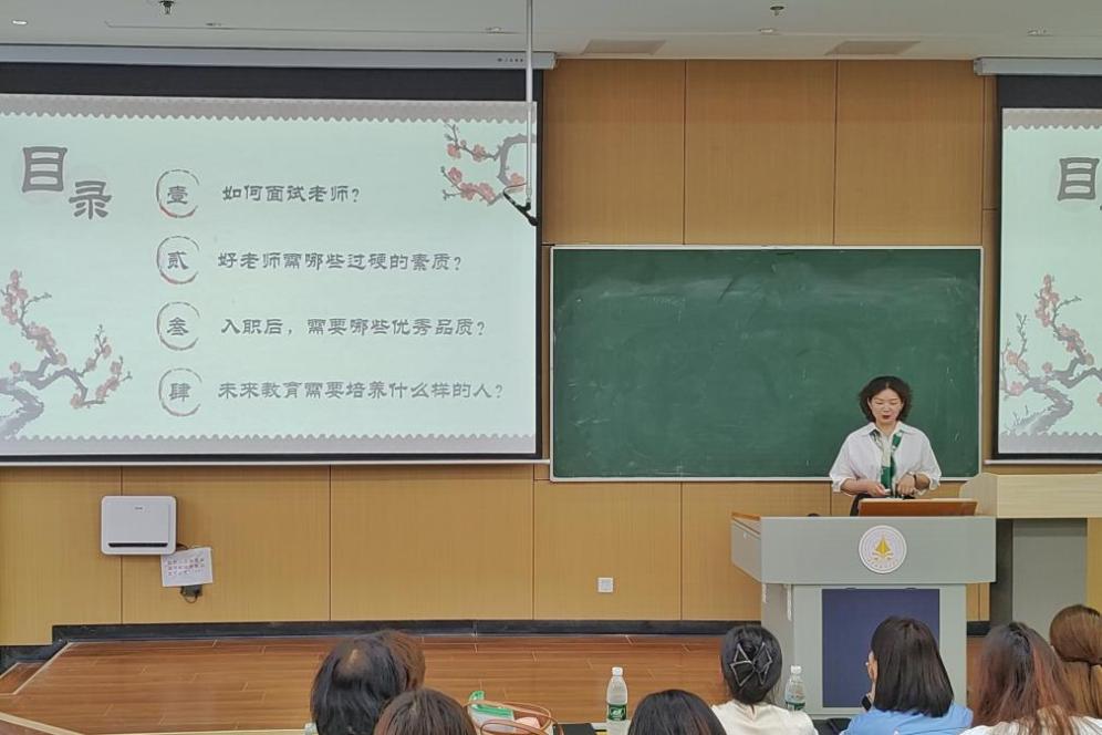 活动上,钟校长以“宝剑锋从磨砺出,梅花香自苦寒来——青年教师成长之路”为题开展专题讲座。她以多年教育教学管理经验,提炼出教师面试“望闻问切、剥洋葱、旁敲侧击、应急挑战、多维筛选”等五大策略,解码教师招聘的核心考察逻辑。针对好老师的硬核素质,钟校长构建了“管理能力、备课能力、研究能力、上课能力、反思能力、作业设计能力、迭代能力”等七大能力矩阵,勾勒出新时代教师的职业画像。面对职业发展,钟校长强调:态度决定赛道,拒绝讨价还价型工作模式,以“多做事即积累资本”的心态避免边缘化,以“五指协同”指出“成就他人方能成就自己”的职场逻辑;在方法论层面,她分享了“四象限时间管理法”与“精力管理五维模型”,呼吁青年教师远离短期功利思维。在教育趋势方面,钟校长揭示了家长认知从唯学历到多元成才的转变,要培养“既专又全”的时代新人。最后,钟校长以“只要咱们勇敢向前,前路一定是繁花盛开”寄语学生,鼓励大家以热爱为基,以磨砺为阶,以终身学习来应对教育变革。
