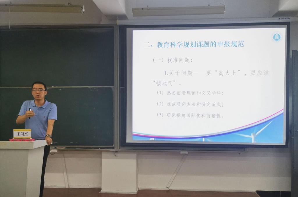 陕西省教育科学规划办公室王尚杰副主任为语言文化传播学院全体教师作了专题讲座,分享了国家、陕西省教育科学规划课题评审原则、申报规范,以“抓住问题导向,凝练学科问题,完成理论升华,指导解决实际”这一思路,高度凝练了课题选题、文献综述、研究目标和内容、实施步骤、撰写注意事项等问题。王主任与老师们就感兴趣的课题进行了深入探讨与交流。老师们倍感受益匪浅。