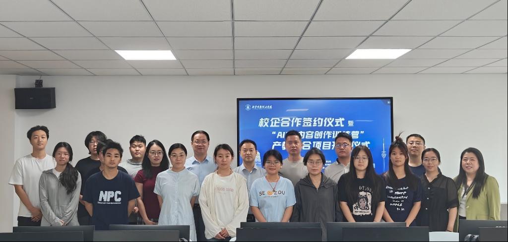 6月4日,经济与管理学院市场营销专业与元之宙(陕西)科技有限公司在明心楼北303举行校企合作签约仪式暨“AIGC内容创作训练营”产教融合项目开营仪式。学院党委书记兼行政副院长何文举、数字金融产业学院副院长刘敏、市场营销专业负责人付铁岩、教师黄婕、员婉婉、靳孟茹和阎玉鑫,元之宙(陕西)科技有限公司负责人、学生代表等参加了活动。活动由黄婕主持。