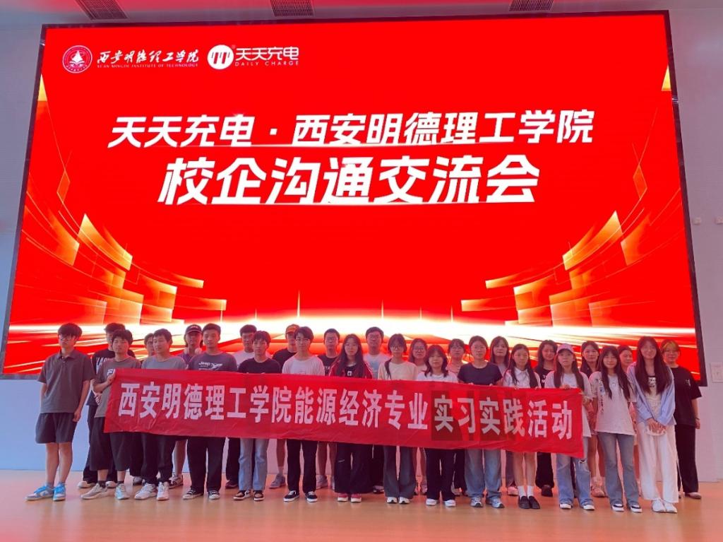 7月11日,数字金融产业学院副院长刘敏,经济与管理学院能源经济专业负责人孙丁、教师韩玮、邓文佳、吴雨佳、杨红丹、石倩倩及2024级75名学生赴新能源充电基础设施领军企业陕西天天出行科技有限公司西安总部开展产学研交流活动。本次活动聚焦“双碳目标下充电网络的经济模型与市场机制”,通过技术观摩、高管对话、场景实训三大环节,解码绿色能源产业变革的一线密码。