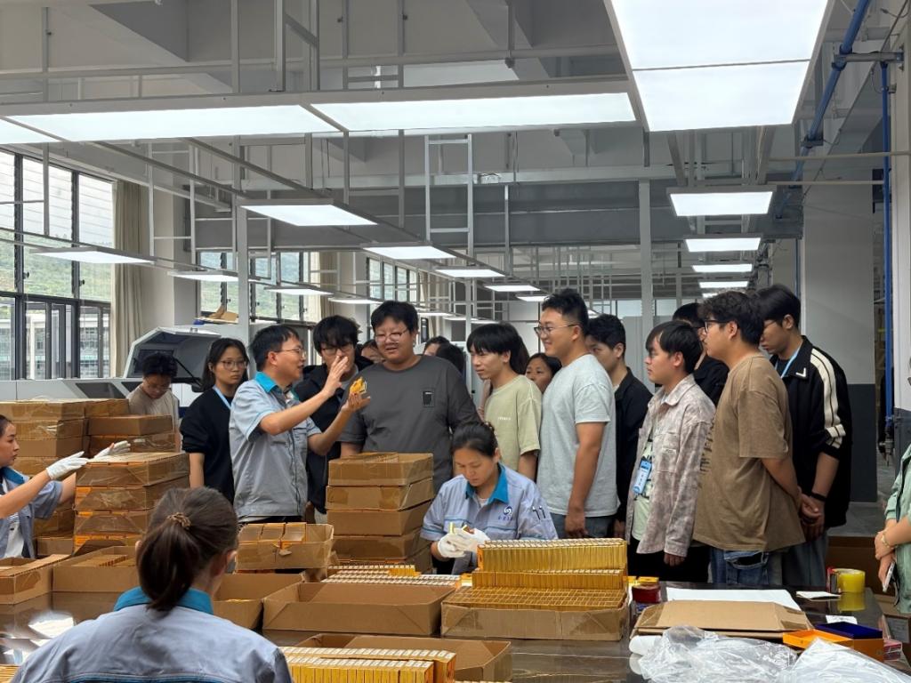 实习期间,企业导师们围绕印刷生产的技术演进、人力资源管理、企业财务与成本管理、工艺技术与客户服务、生产制造管理等主题开展了系列专题讲座与实操培训。学生们通过参与印刷生产工艺及印前管理全流程培训,了解了现代制造业中MES系统和二维码管理等信息化手段在生产环节的运用;学习了现金流管理、成本核算方法及其对企业运行的重要意义;掌握了招聘、面试的实用技巧,并结合自身情况展开了积极探讨。同学们走进两家企业的生产车间,参观了手工裱盒生产线、烫金模切生产线、质检生产线,实地观摩了客户服务及售后流程的规范管理,近距离感受企业先进的印刷生产线及厂区布局,进一步加深了对行业的认知。