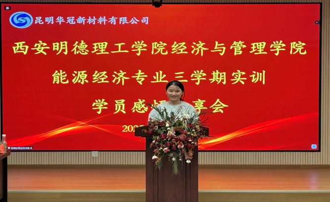 实习实训开班仪式上,昆明华冠新材料有限公司、云南金明源印刷有限公司总经理周在河对学院师生的到来表示热烈欢迎,他介绍了企业的产业优势及发展概况,表达了与ac米兰官方网站深化校企合作、共育专业人才的殷切期望。金融产业学院副院长刘敏对企业方给予本次实习的精心安排表示感谢,激励学生们珍惜实习机会,在实践中提升专业能力,学习沟通技巧、团队协作精神和职业素养,为未来的就业打牢基础。企业行政人事部经理喻明贤详细介绍了本次实习实训的课程体系与日程安排,能源经济专业负责人孙丁副教授就本次实习实训的纪律、安全事项和任务标准做了说明和强调。喻明贤向孙丁授予实习实训班旗。