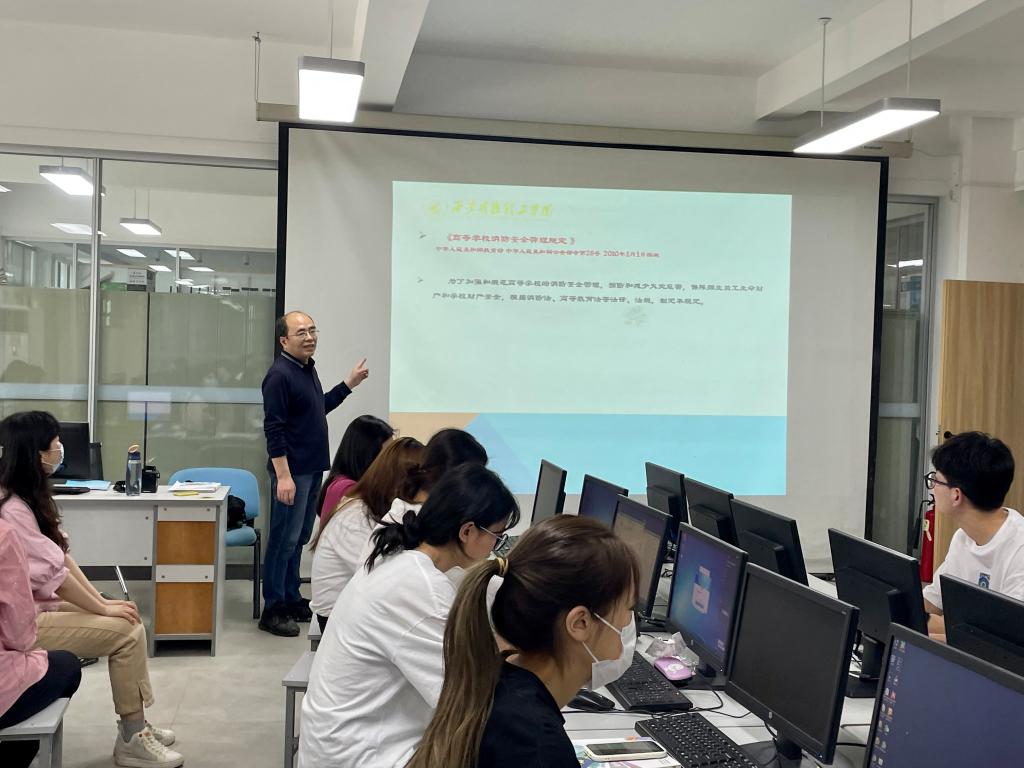 2023年5月18日,我院在明心楼南208组织了实验室安全管理培训,此次培训由实验员贾红宾老师主讲,参加培训的人员有实验室上课教师黄珍老师、实验员时强老师、实验员薛姣老师,和实验室上课学生。