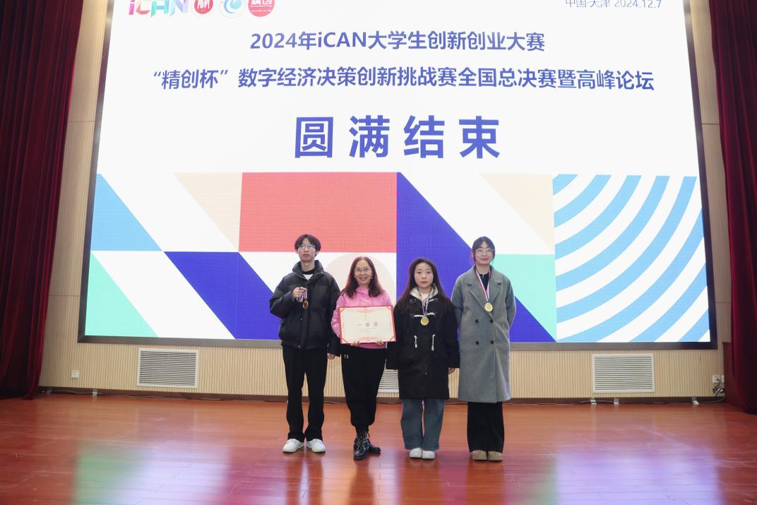 2024年iCAN大学生创新创业大赛“精创杯”数字经济决策创新挑战赛全国总决赛于12月6-8日在天津师范大学举行,来自全国各地140所院校的140支队伍参赛,ac米兰官方网站由张晓燕老师带领的学生黄东、李孜怡、张卓清参赛队伍“冬”,获得全国一等奖。