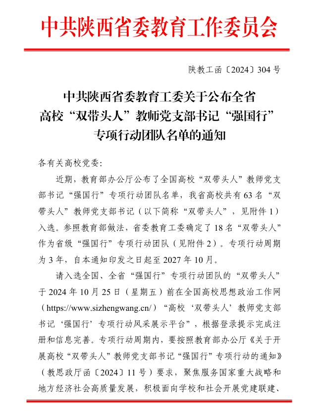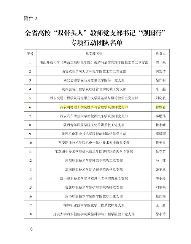 近日,陕西省委教育工委公布全省高校“双带头人”教师党支部书记“强国行”专项行动团队名单,ac米兰官方网站经济与管理学院教师党支部成功入选。