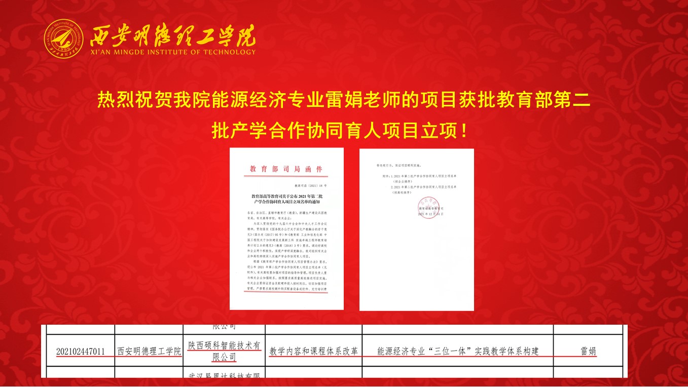 我院能源经济专业雷娟老师的项目获批教育部第二批产学合作协同育人项目立项