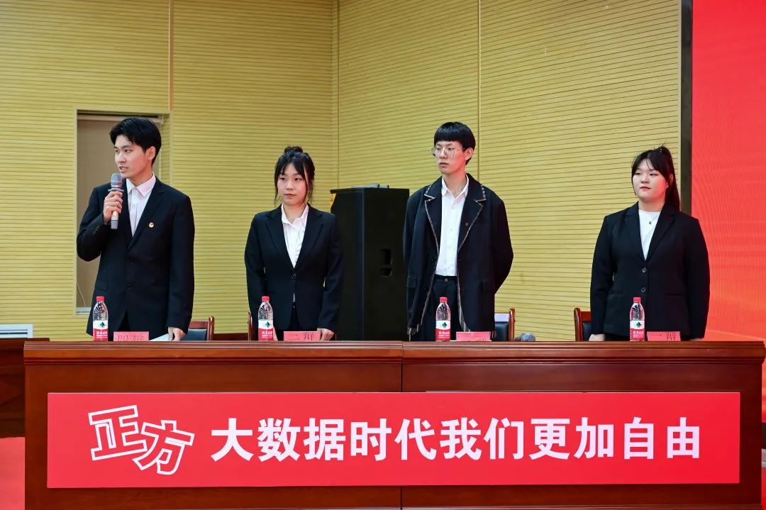 活动开始,主持人向在场师生介绍本次比赛流程及要求。正反双方围绕“大数据时代我们更加自由还是不自由”主题进行辩题,双方以思维缜密的辩论,快速的临场反应为我们展现了精彩绝伦的比赛。双方辩手唇枪舌剑,尤其到最后的激烈定夺冠军阶段,现场气氛迅速攀升,掌声、欢呼声不断。