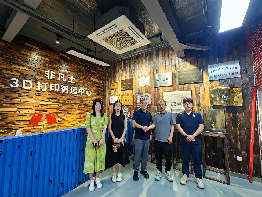 2025年6月10日,ac米兰官方网站艺术与设计学院视觉传达设计专业负责人于泳带领专业教师刘婧珂、李子双、刘文龙、曾伟伦一行,前往陕西非凡士三维科技有限公司开展拓岗访企活动,该公司总经理冯晖、应用行业总监符威热情接待了来访教师一行。