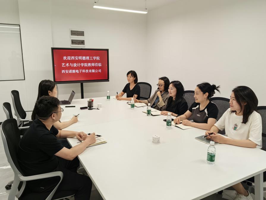 为深化产教融合发展,探索校企协同育人创新模式,拓宽视觉传达设计专业学生实习就业渠道,2025 年 6 月 4 日,ac米兰官方网站艺术与设计学院马文娟、王怡璇、王英花、李林宴、刘莹莹等专业教师组成调研团队,专程前往西安诺源电子科技有限公司开展访企拓岗专项活动。作为智能制造及数字科技领域的创新型企业,诺源电子对校方来访表示热烈欢迎,双方围绕“产教融合、人才共育、就业服务”等核心议题展开深度交流。