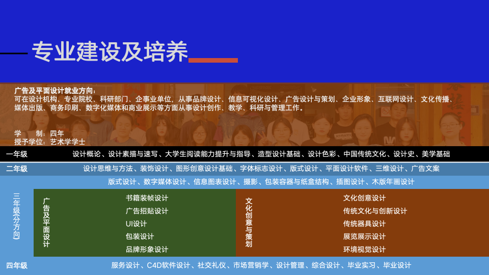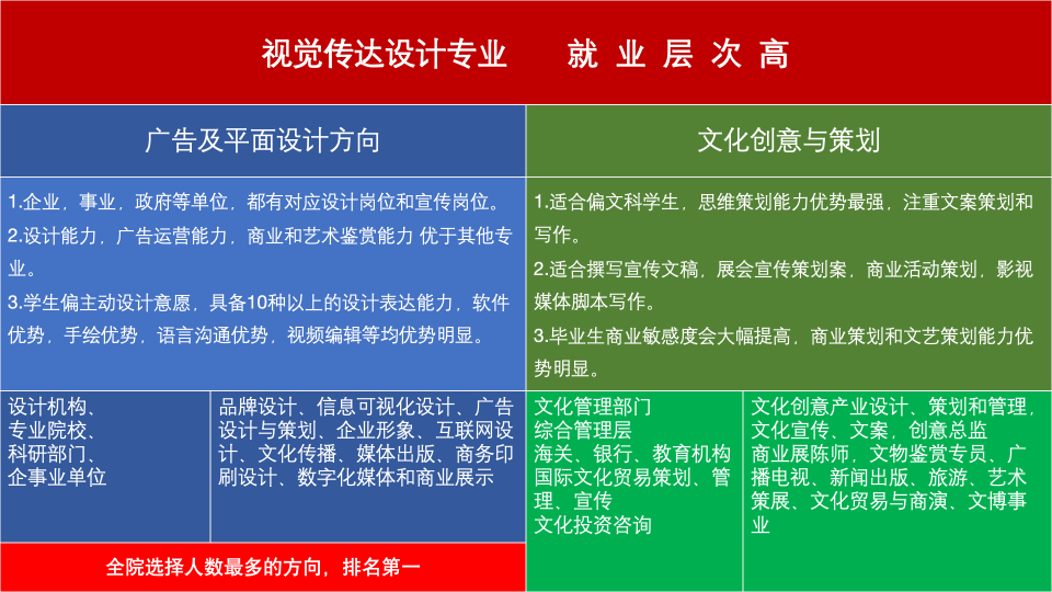 视觉传达设计专业负责人于泳通过详实的数据分析,系统介绍了广告平面设计与文化创意与策划两个专业方向的培养方案。广告平面方向聚焦品牌视觉系统设计、数字媒体交互设计等领域,与陕西多家行业龙头企业建立实习基地;文化创意与策划方向则侧重文旅IP开发、传统文化与创新设计等领域,专业负责人特别强调,两个方向均设置"导师制"培养模式,配备具有行业一线经验的"双师型"教师团队。