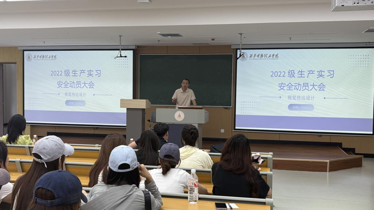 为深入贯彻落实陕西省教育厅《关于进一步加强大学生实习管理工作的提醒函》的要求,继续加强和规范视觉传达设计专业学生实习工作,切实提高学生实习质量,促进人才培养质量整体提升,6月13日下午,视觉传达设计专业于8号楼402教室召开2022级、2023级本科生考察实习动员及安全教育会议。专业负责人于泳、校外实习指导老师曾伟伦、刘婧珂、李子双出席会议,2022级、2023级视觉传达设计专业实习学生全体参会。