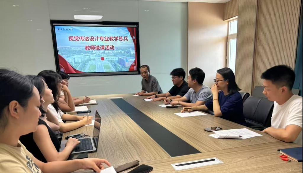 为深入贯彻落实本科教育教学审核评估工作要求,全面推进教学提质与师资发展,7月21日,视觉传达设计专业成功举办“教学说课大练兵”专题活动。本次活动以“提升教学能力、推进教研融合”为主线,专业全体教师积极参与,通过说课程、教学展示与多元研讨,进一步夯实课堂教学质量,强化学研互促机制,营造科研反哺教学、教学推动创新的良好生态。