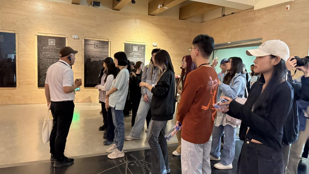 抵达敦煌后,考察课程便以丰富多元的形式有序展开。专业教师带领学生们走进敦煌市规划馆,在现代化的展陈空间中,通过动态沙盘、数字影像等科技手段,全方位了解敦煌城市发展的脉络与规划蓝图。从城市格局的演变到文化遗产的保护与利用,学生们直观感受到敦煌在传承中发展、在创新中守护的发展理念,为后续的文化探索奠定了宏观认知基础。