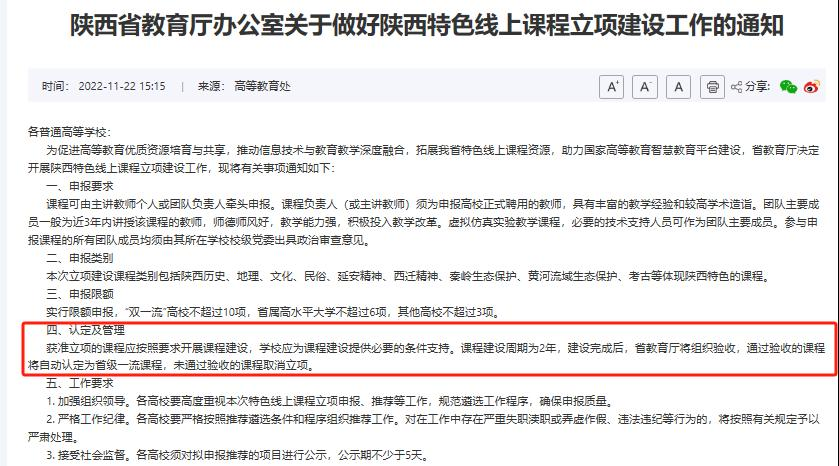 陕西省教育厅本次组织了对全省立项建设的135门特色线上课程集中结题验收,最终确定127门课程予以通过。ac米兰是立项课程全部通过验收的院校之一,彰显了学校在特色课程建设、线上线下混合式教学改革方面的扎实成效与深厚潜力。